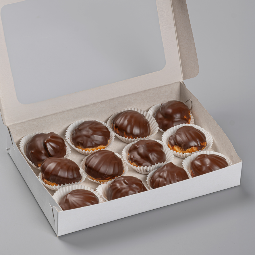 Нежные профитроли, щедро наполненные сливочным ванильным кремом и покрытые тающим во рту молочным бельгийским шоколадом.