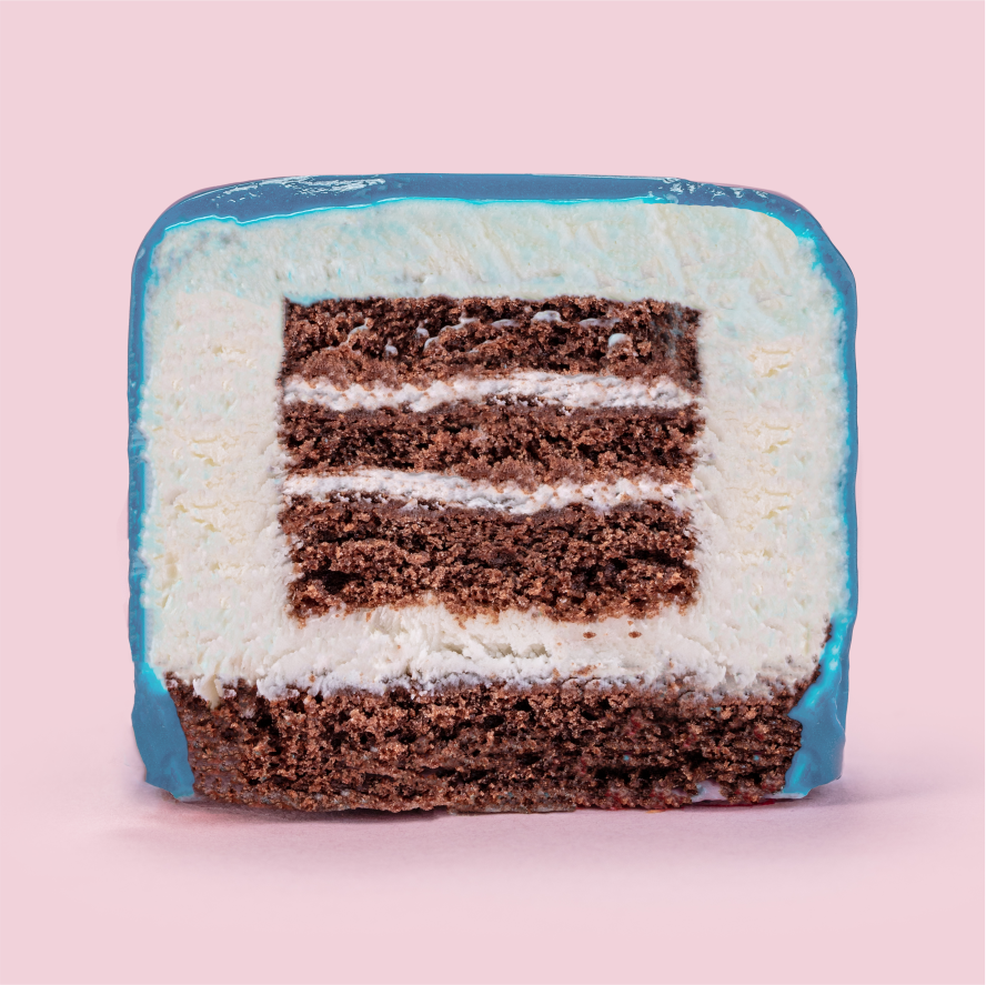 Пышный бисквит с добавлением темного бельгийского шоколада, мусс "Cream Cheese" - творожный сыр, итальянская меренга и взбитые сливки.
